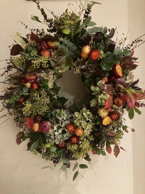 We create seasonal wreaths using fresh and dried flowers, picking whatever’s at its best throughout the year. Each wreath is a little celebration of the season, full of natural textures and colours that bring a warm, welcoming touch to your home.